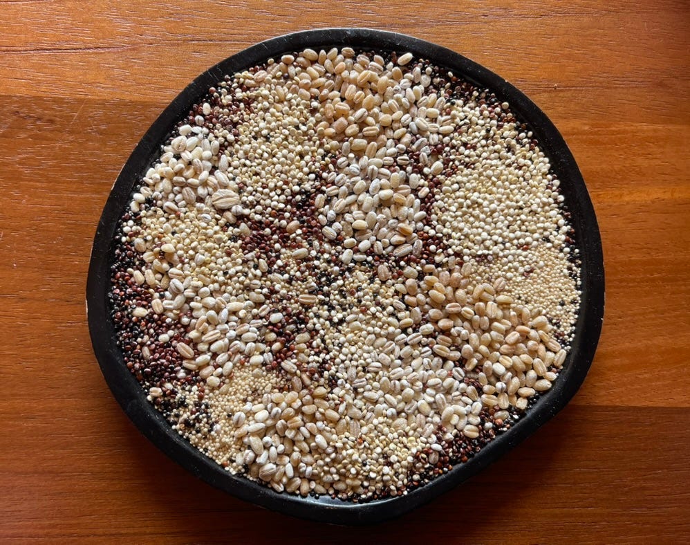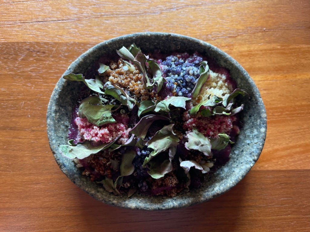 One dish made it visible. Multiple varieties of quinoa, each a different color, each adapted to a slightly different altitude or soil condition, gathered into one stone bowl. Constraint didn't limit what grew here. It multiplied it.