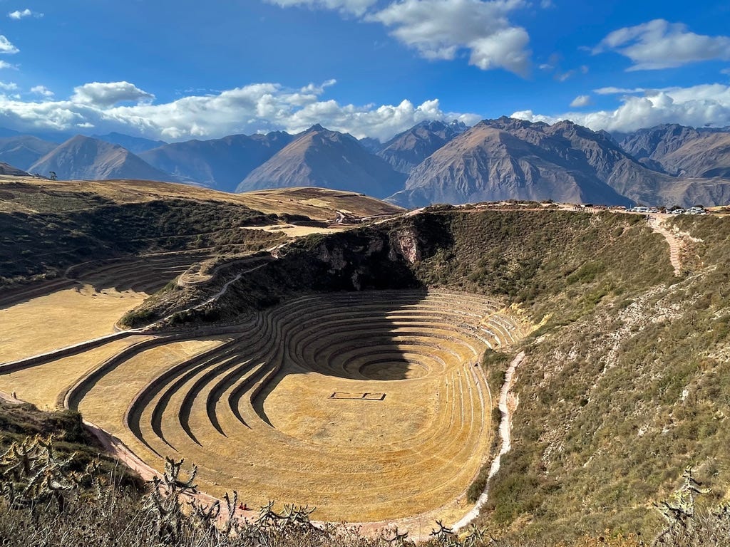 At 11,500 feet, your lungs notice the altitude before your eyes adjust. The restaurant sits on a plateau next to Moray, an archaeological site where the Incas carved concentric circular terraces into the earth. Essentially an ancient agricultural research station. Each level creates its own microclimate, letting farmers test how crops performed across different temperature gradients. Five hundred years before anyone called it science, the Incas were running controlled experiments.