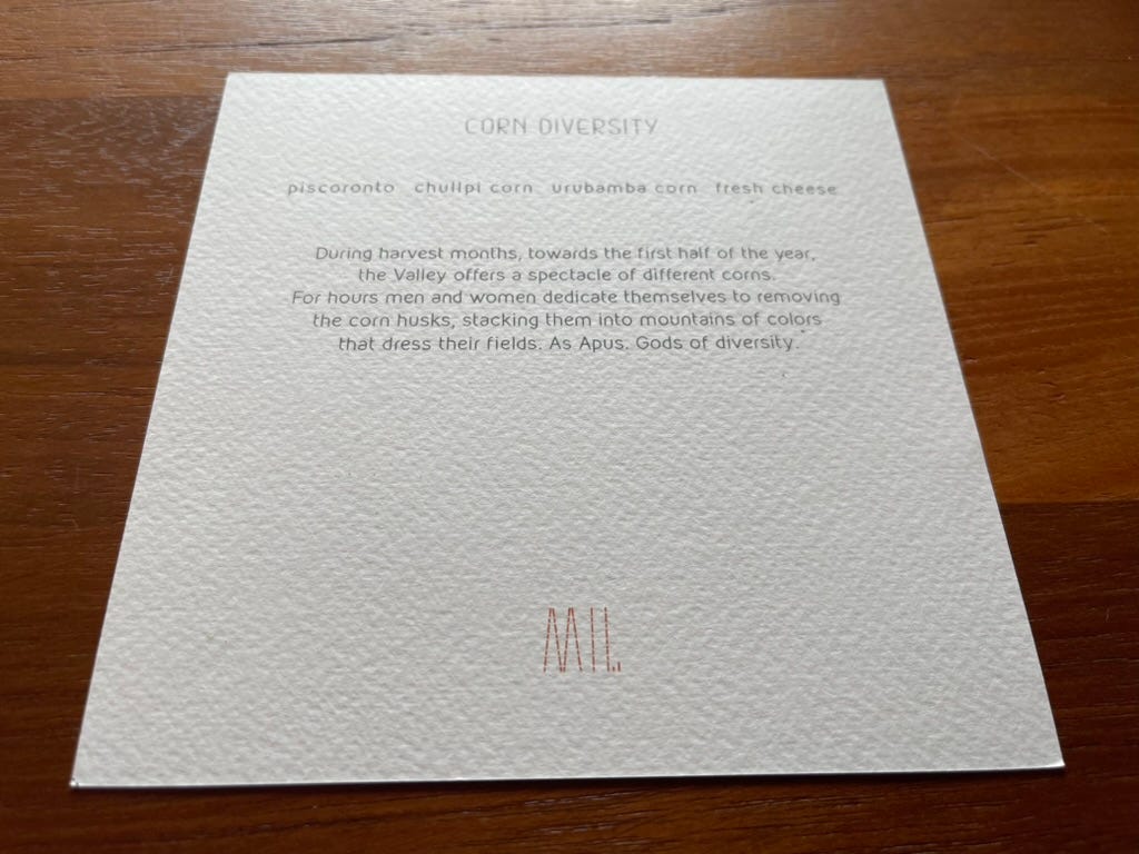 In Centuries in Every Course, I wrote about a meal at MIL—a restaurant 11,500 feet above sea level in the Peruvian Andes. Virgilio Martínez and Pía León built something here that honors centuries of Andean culture while creating economic opportunity for the communities around it. Eight courses. Eight ecosystems.