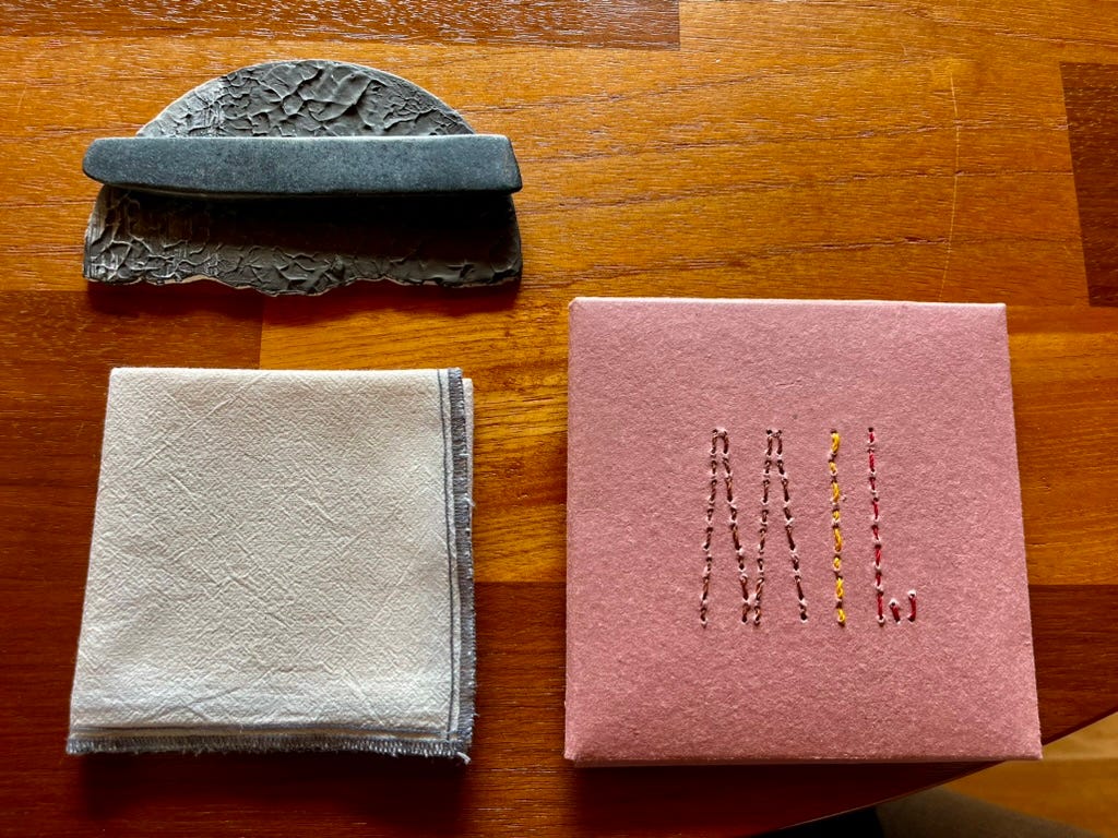 The meal begins with objects on the table. A hand-stitched menu cover. A woven napkin. A carved stone bowl. Everything made from materials found within miles of where you sit.