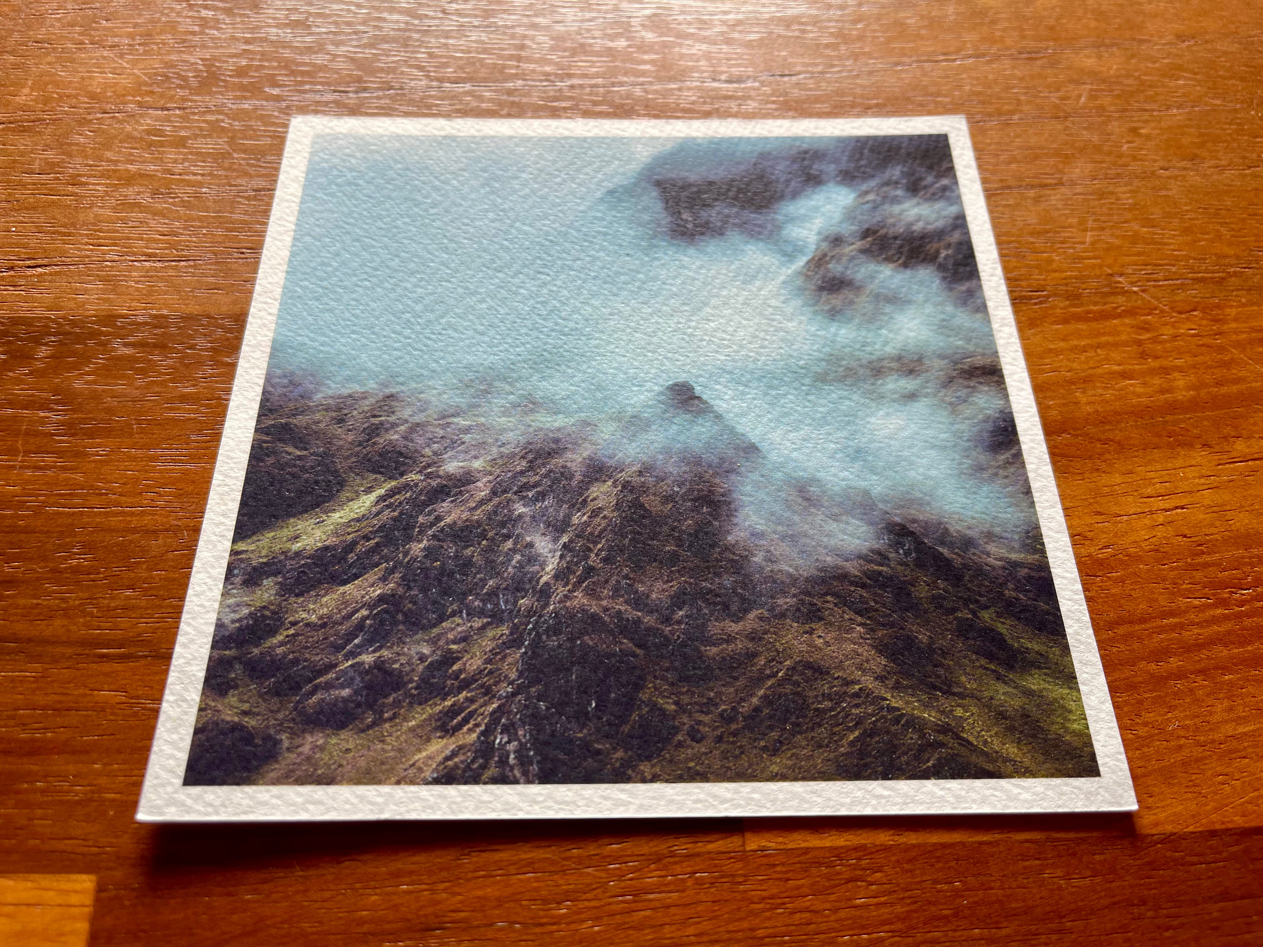The front side of the sweet huatia card is a photo of the rugged, unforgiving landscape that produces delightful food at the hands of the talented producers in Peru.
