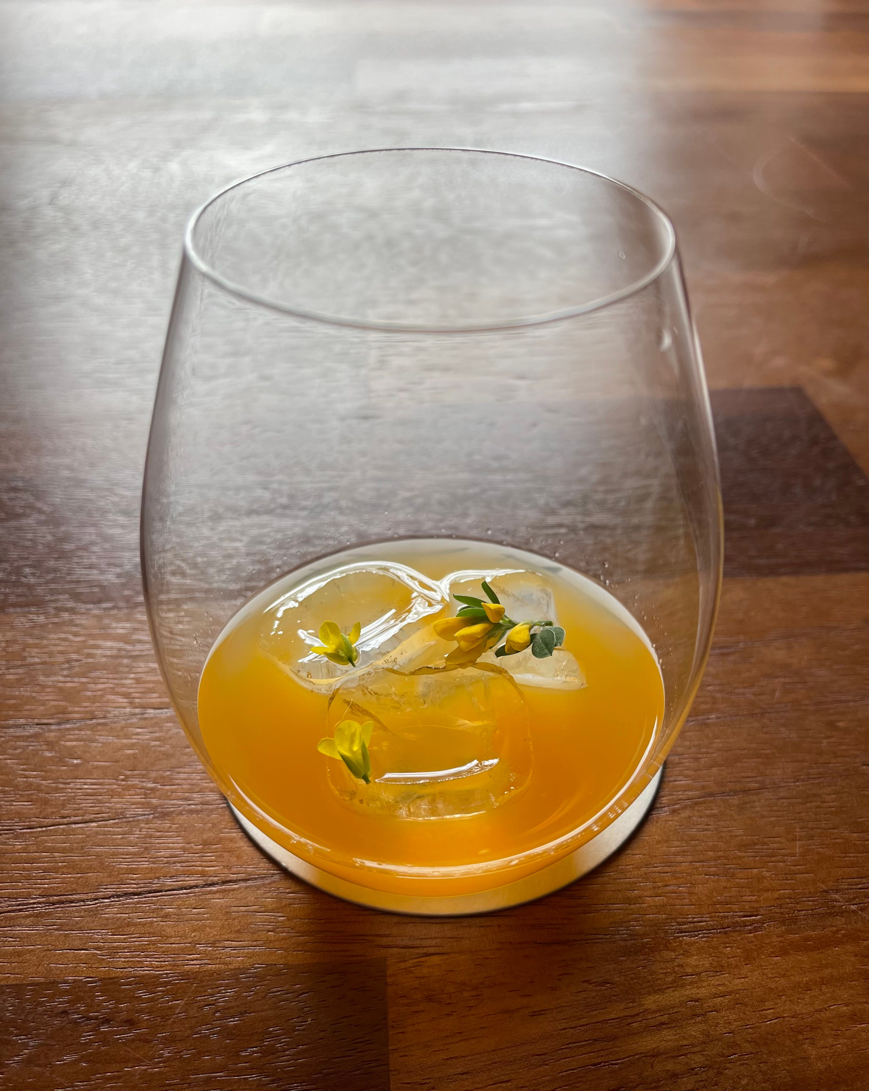 The meal ends here. A golden infusion, two small flowers floating. Quiet. Contemplative.
